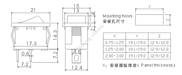 | 型 号 Model No. | 端 子数 Terminal Quanlity | 通断状态 Circuitry Trait |