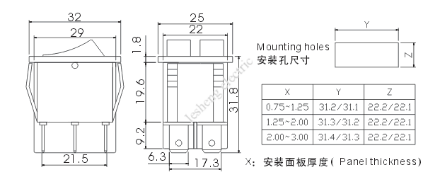 | 型 号 Model No. | 端子数Terminal Quanlity | 通断状态 Circuitry Trait |