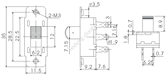 工作参数 Contact Rating:               250VAC/125VAC,3A/6A