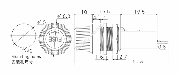 | For Fuse | Rated Amperage | Rated Voltage | Operating Power | Contact Resistance | Insulation Resistance | Dielectric Strength |