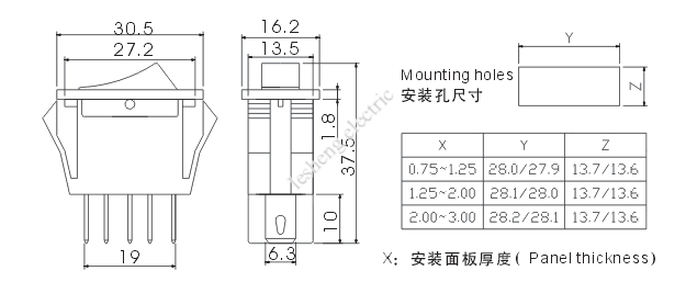 | 型 号 Model No. | 端 子数 Terminal Quanlity | 通断状态 Circuitry Trait |