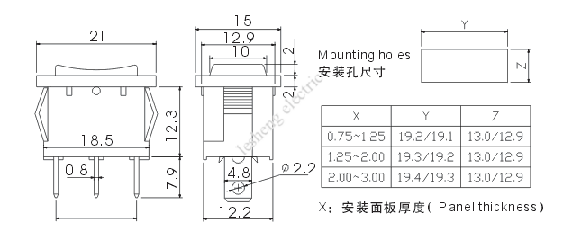 | 型 号 Model No. | 端 子数 Terminal Quanlity | 通断状态 Circuitry Trait |