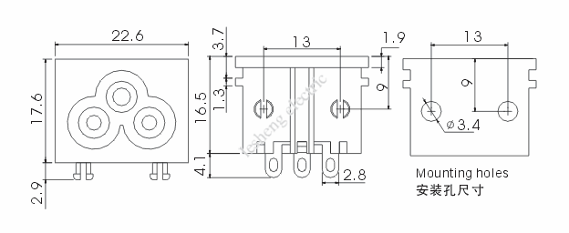 5. 装配方式:插卡式,装配板厚度0.8,1.0或1.2mm