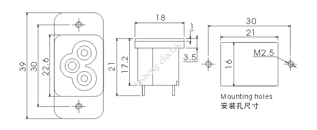 2. 电气参数Operating data: 2.5A, AC250V